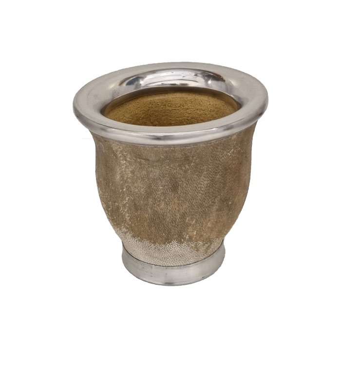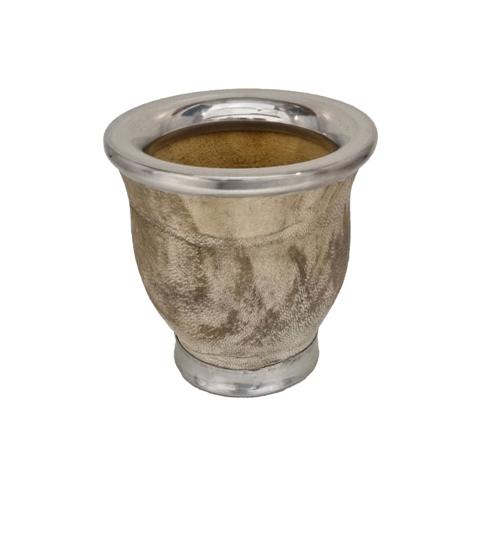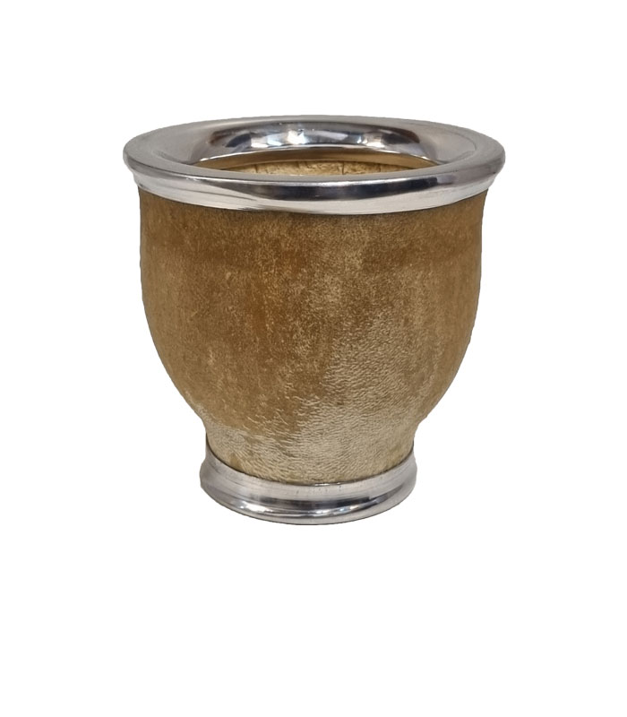 Mate de cuero de potro sobre calabaza porongo. Modelo copita con base de apoyo en aluminio.