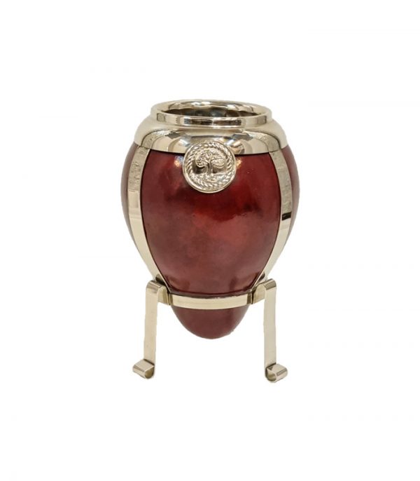 Mate camionero con virola de alpaca, ideal para grabar y personalizar. Cuero vaqueta de primera calidad y calabaza porongo seleccionada.