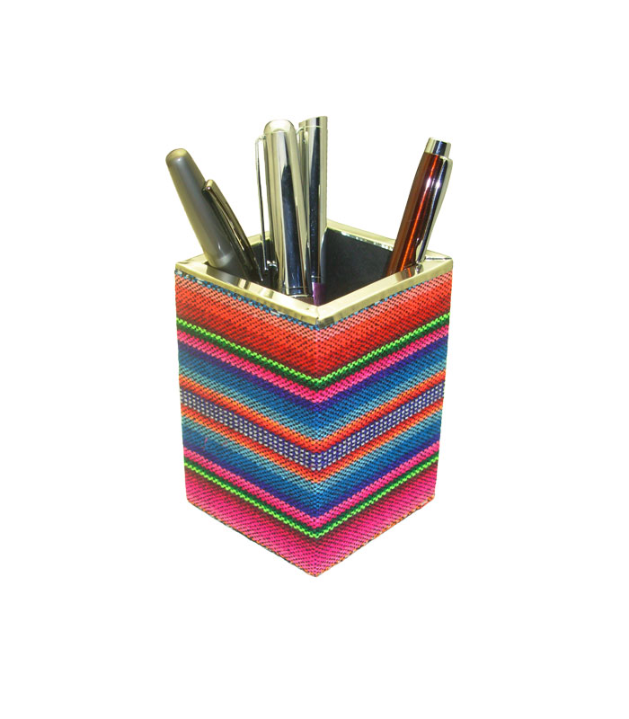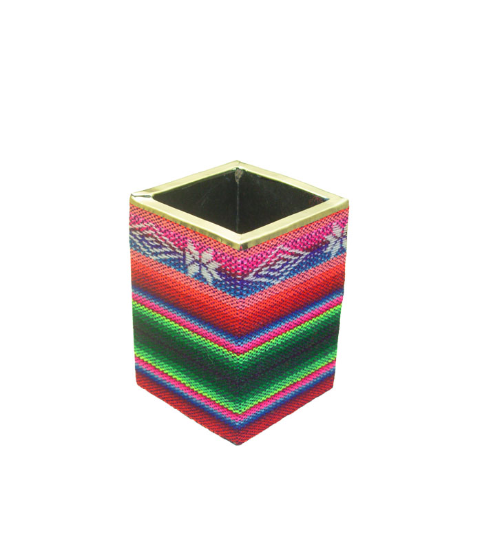 Portalápiz de alpaca y aguayo. Variedad de tramas y colores, respetando el tradicional tejido del norte argentino.